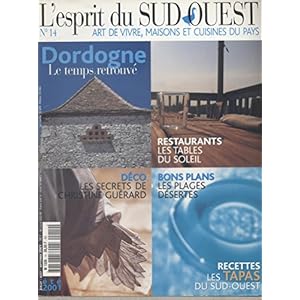 Incoming search For L'esprit du Sud-Ouest N° 14. Art de vivre, maisons et cuisines du pays Dordogne, Restaurants, Plages, Tapas du Sud-Ouest… (Sud-Ouest, Cuisine, Dordogne) Eté 2001.